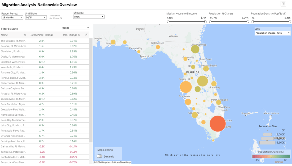 - Population Demographics: Florida attracts a diverse demographic—from young professionals and families to retirees. Understanding the local population’s needs in each area can help developers tailor their projects effectively. Senior housing will continue to be a top investment category in areas like The Villages, while workforce housing may be in demand near growing urban centers like Jacksonville.
